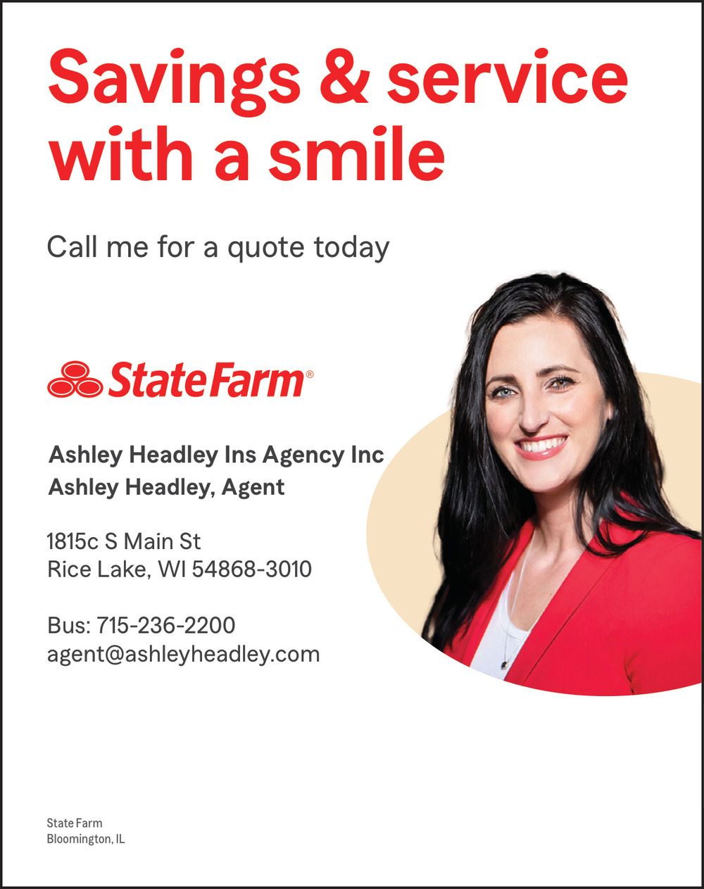 Nov 26, 2025. Ashley Headley - State Farm Insurance Ads from Rice Lake Chronotype