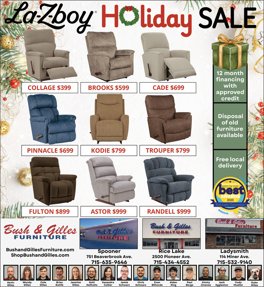 Nov 27, 2025. Bush & Gilles Furniture Home Furnishing Ads from Spooner Advocate