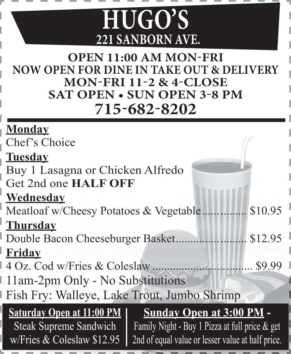 Nov 27, 2025. Hugo's Pizza Restaurants Ads from Ashland Daily Press