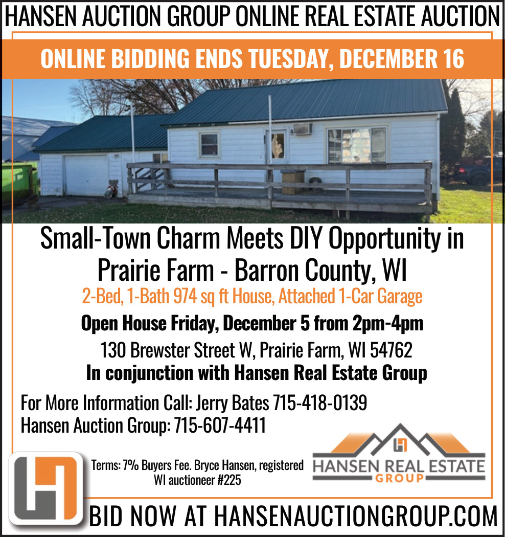 Nov 28, 2025. Hansen Real Estate Group Auctions Ads from Rice Lake Chronotype