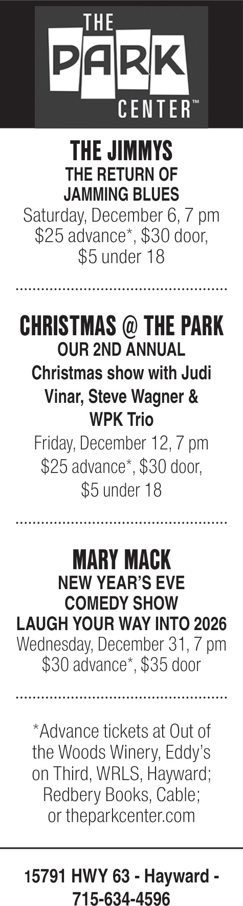 Dec 03, 2025. The Park Center Shows & Theater Ads from Spooner Advocate