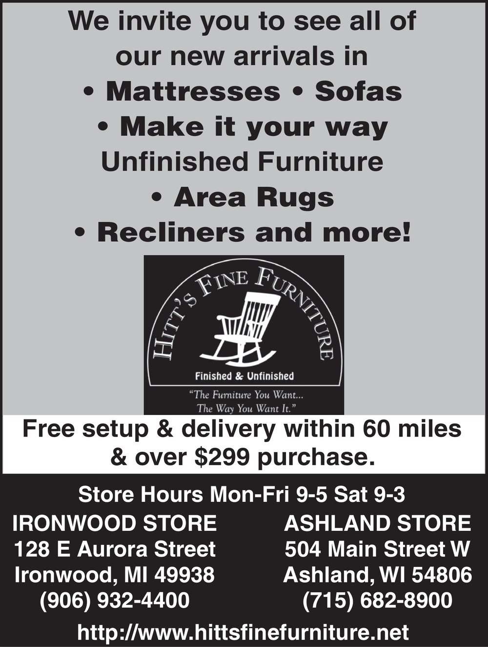 Ads for Hitt's Fine Furniture in Ashland, WI
