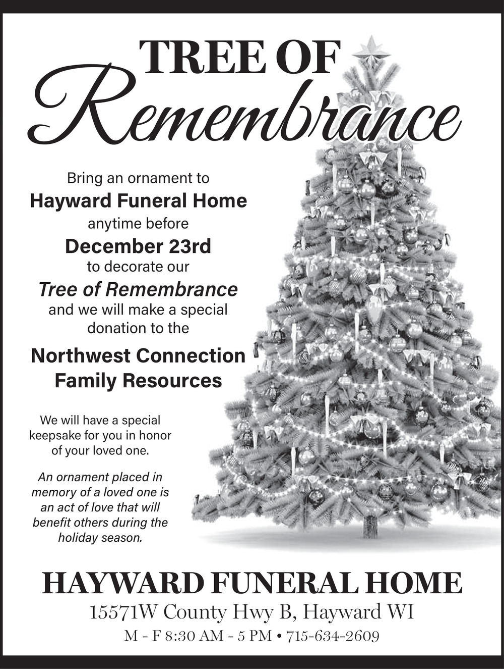 Dec 10, 2025. Hayward Funeral Home Funeral Homes Ads from Spooner Advocate