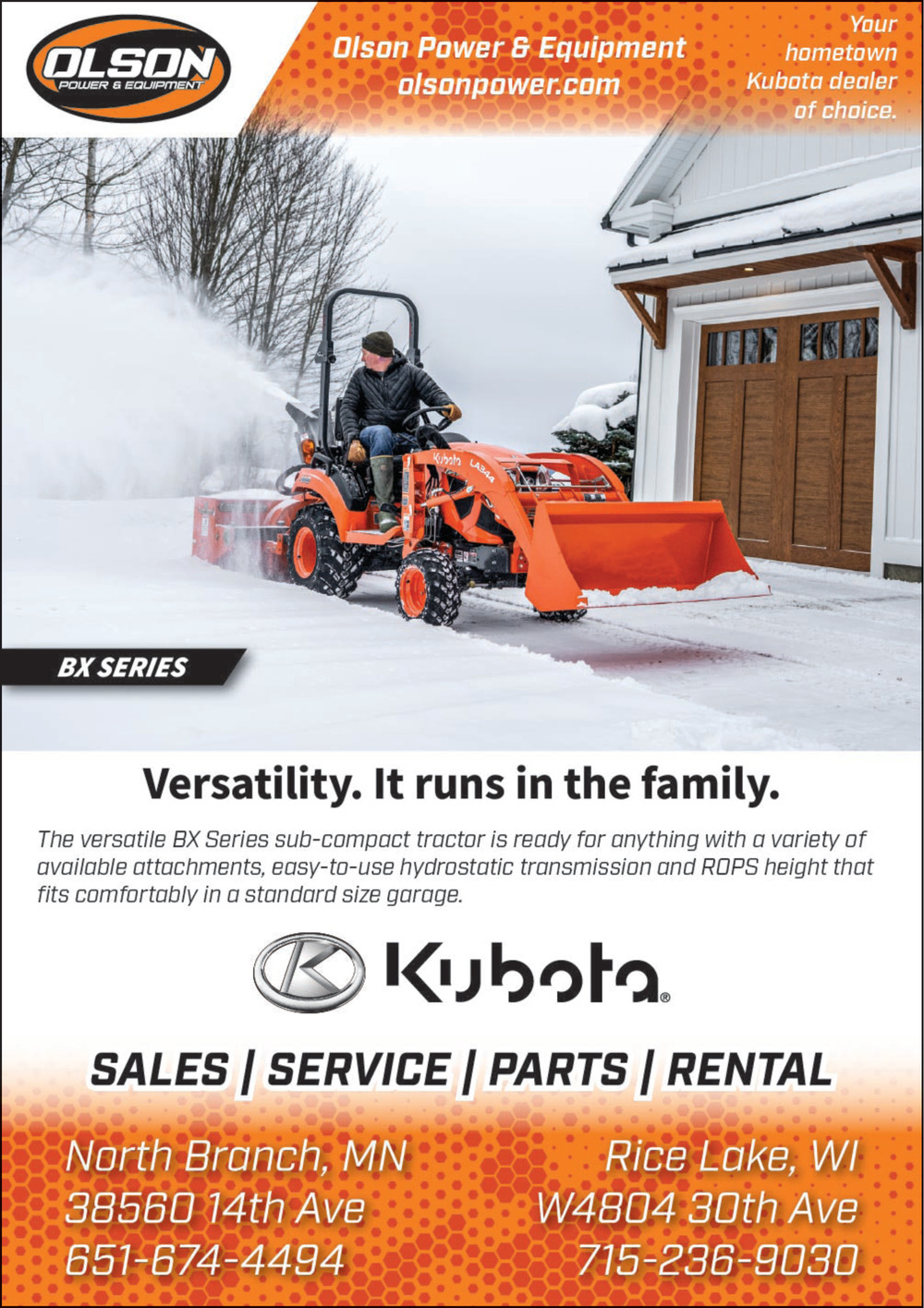 Dec 10, 2025. Olson Power & Equipment - Rice Lake Equipment Ads from Rice Lake Chronotype