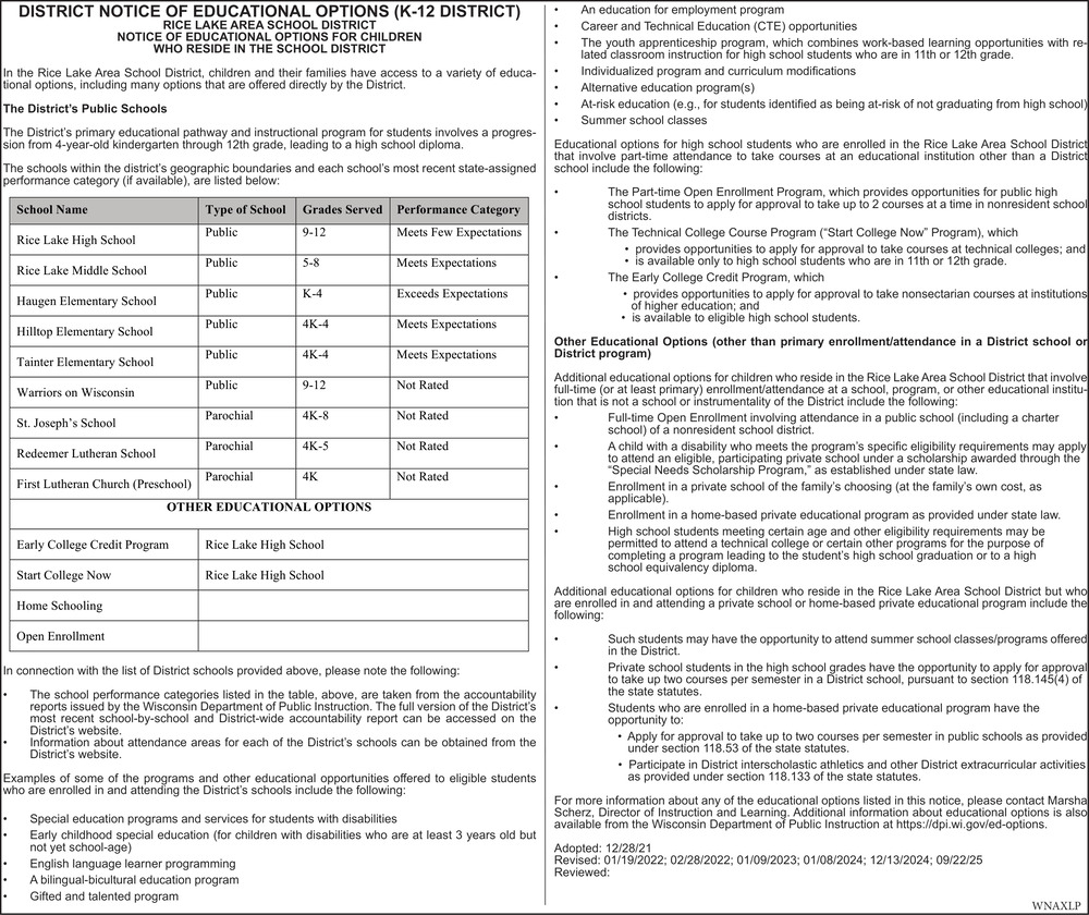 Dec 10, 2025. Rice Lake Area School District Public Notice Ads from Rice Lake Chronotype