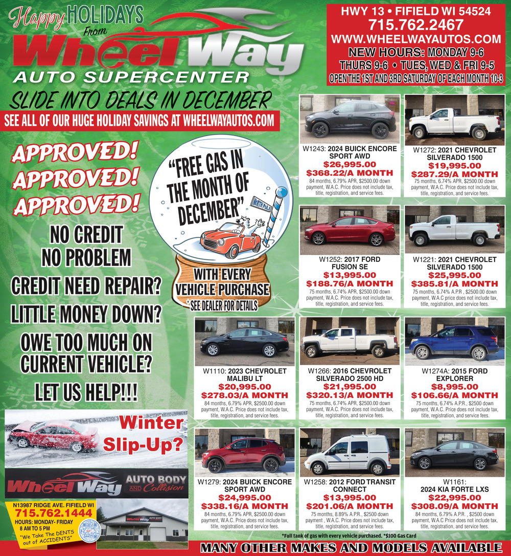 Ads for Wheel Way Auto Supercenter in Fifield, WI