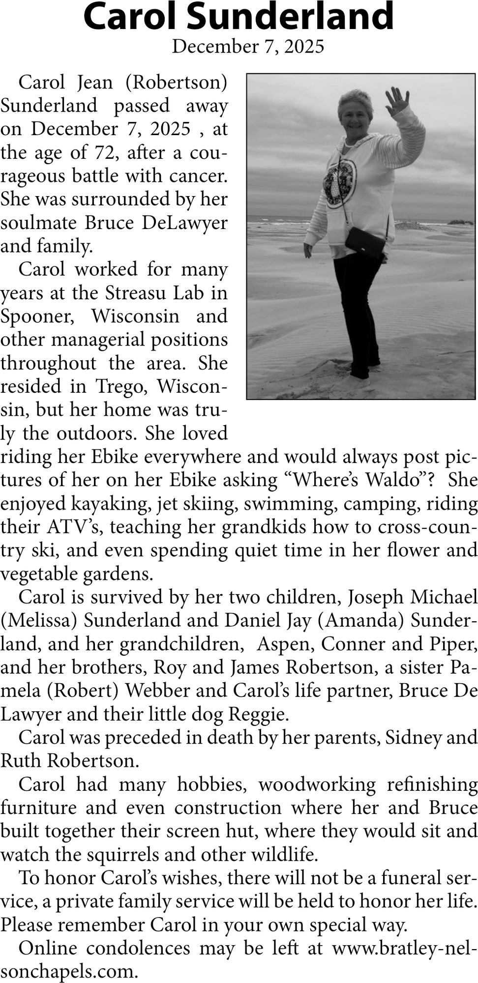 Dec 17, 2025. Spooner Funeral Home Obituaries Ads from Spooner Advocate