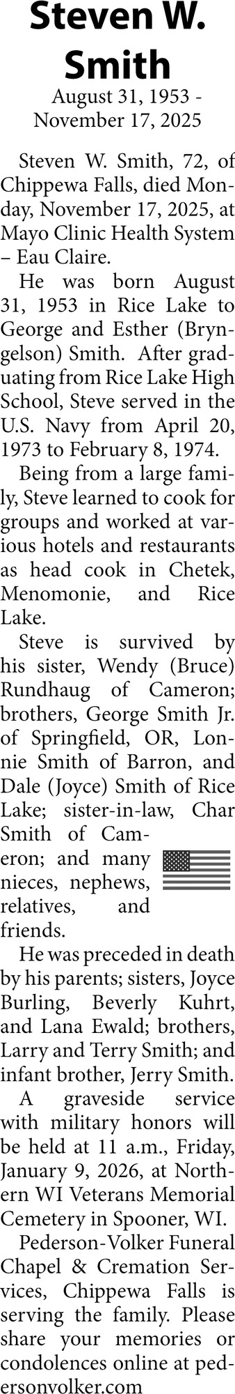 Dec 17, 2025. Pederson-Volker Funeral Chapel & Cremation Obituaries Ads from Rice Lake Chronotype