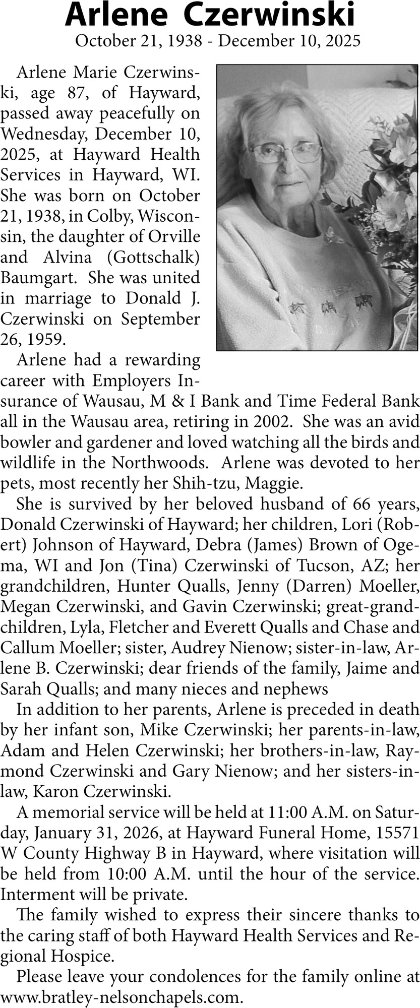 Dec 24, 2025. Bratley-Nelson Funeral Homes & Crematory Obituaries Ads from Sawyer County Record