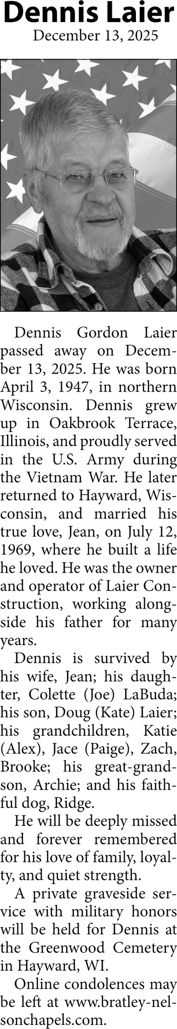 Dec 24, 2025. Bratley-Nelson Funeral Homes & Crematory Obituaries Ads from Sawyer County Record