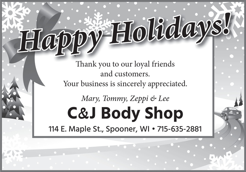 Dec 25, 2025. C&J Body Shop Auto Repair Ads from Spooner Advocate