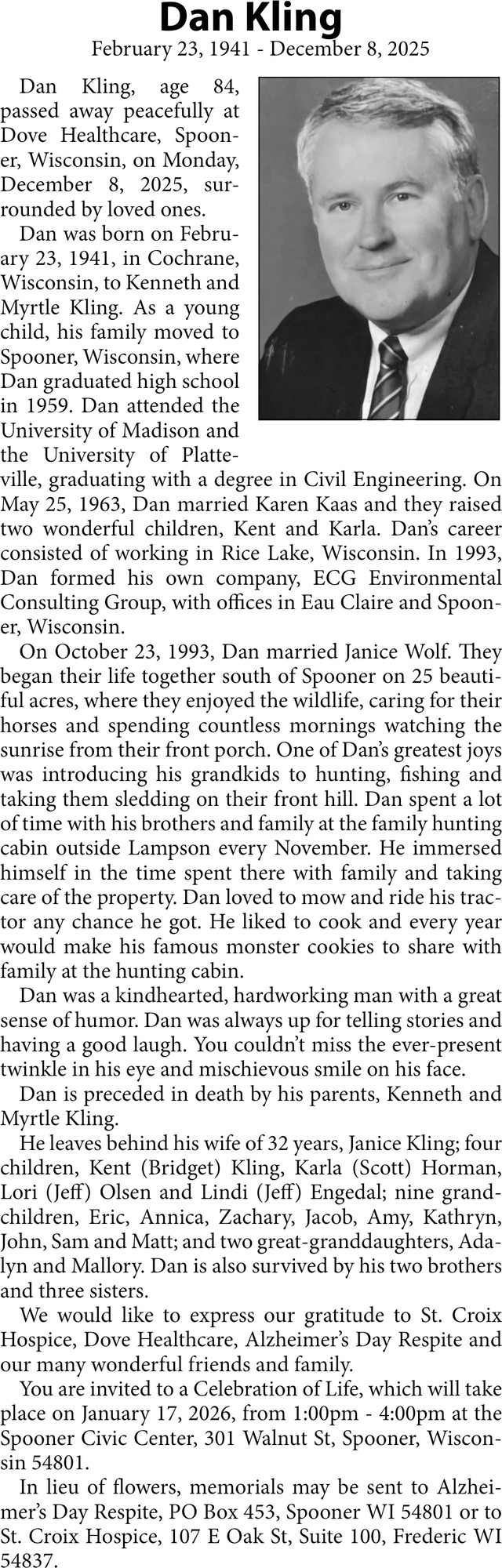 Dec 25, 2025. Obituaries Obituaries Ads from Spooner Advocate