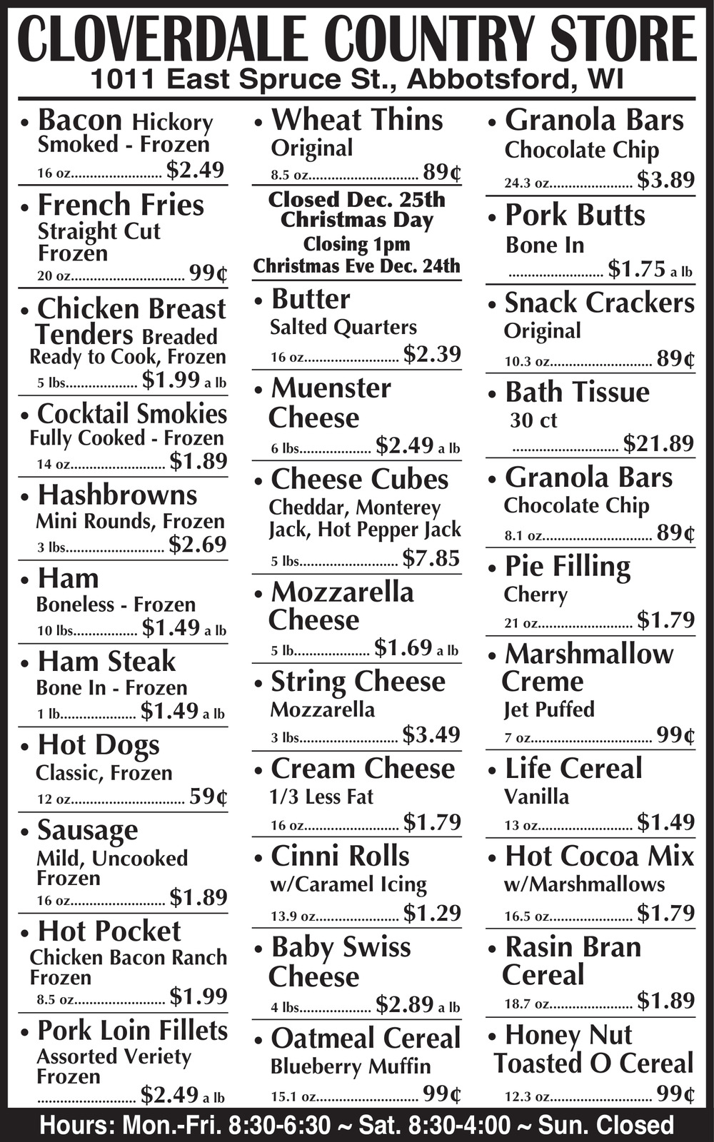 Dec 25, 2025. Cloverdale Country Store Grocery Stores & Markets Ads from Price County Review