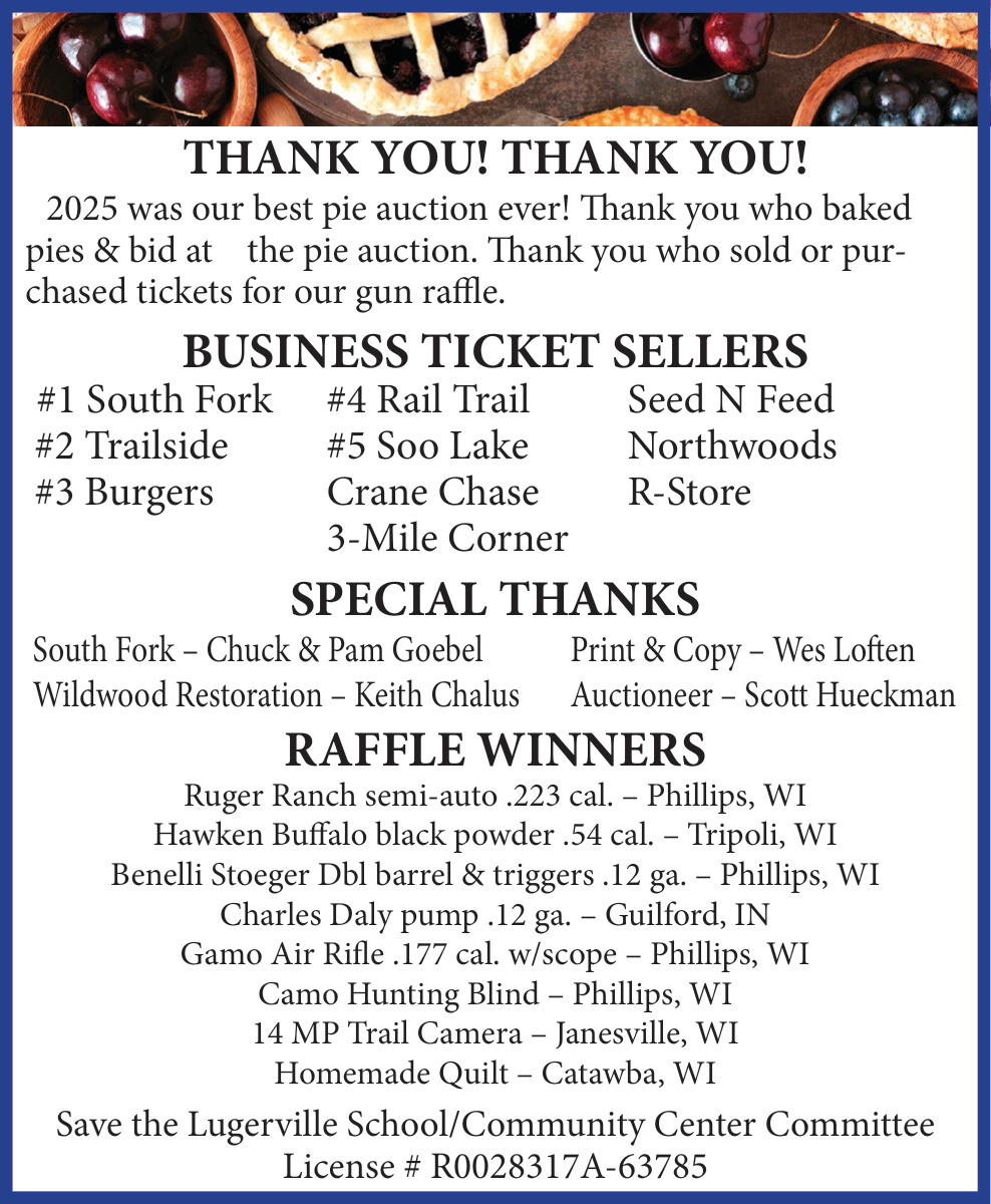 Dec 25, 2025. Lugerville School Education Ads from Price County Review