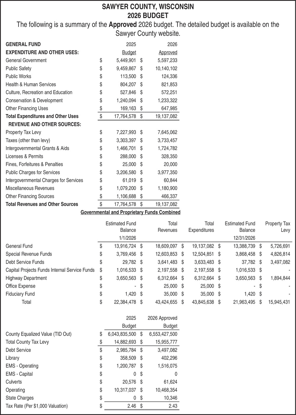 Dec 31, 2025. Sawyer County Public Notice Ads from Sawyer County Record