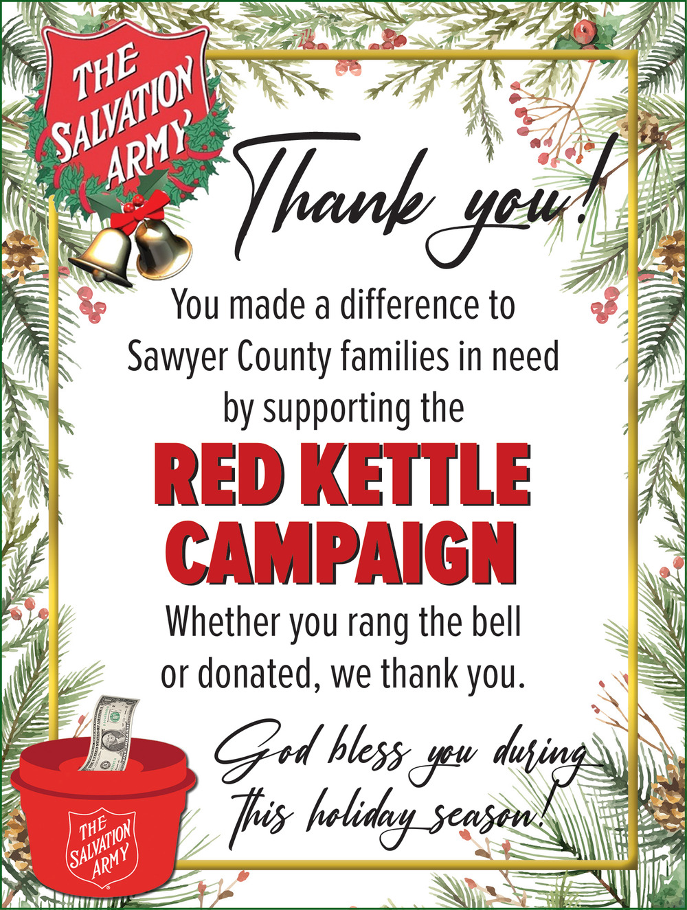 Dec 31, 2025. Salvation Army of Sawyer County Fundraisers Ads from Sawyer County Record