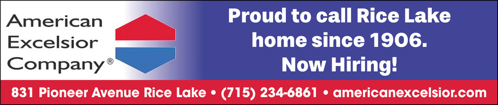 Proud to Call Rice Lake Home 1906, No Hiring!