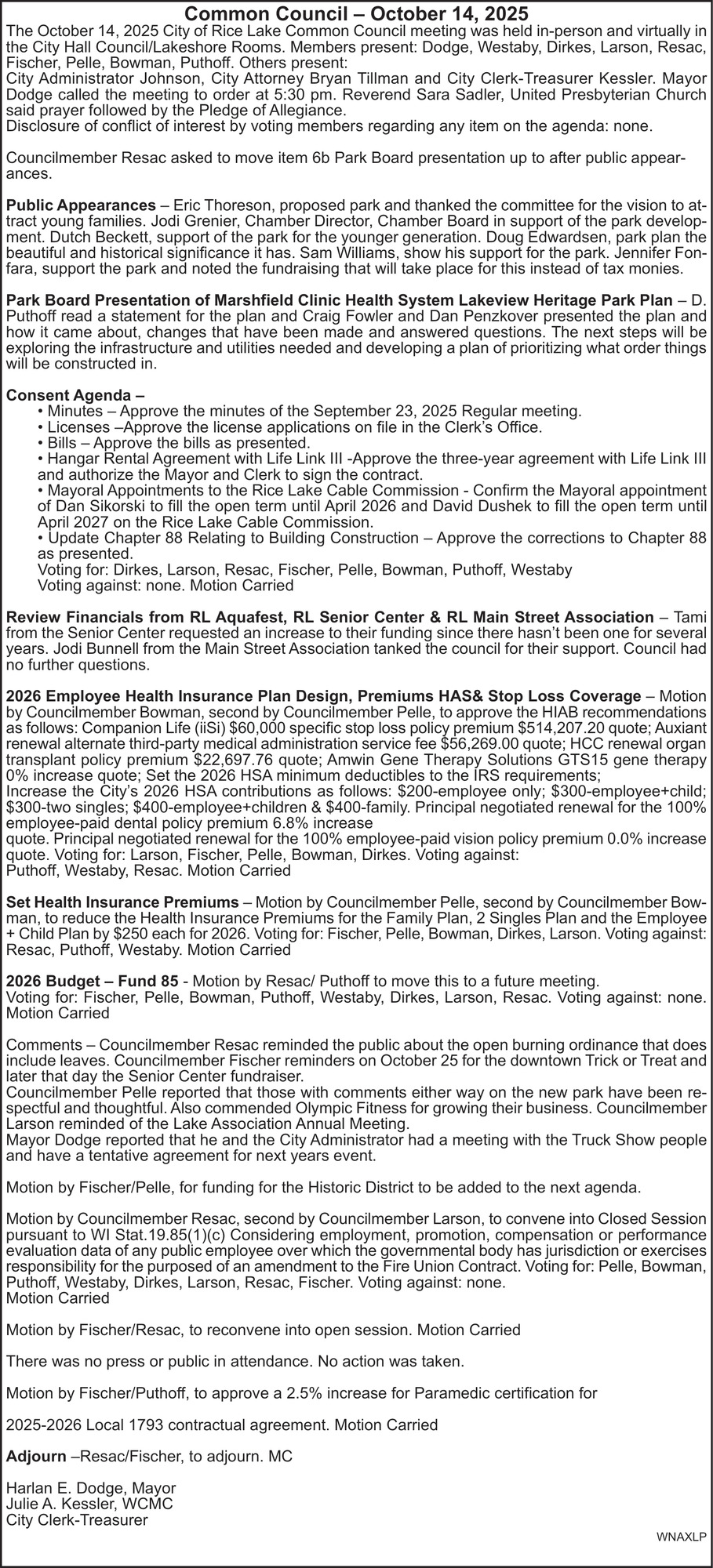 Dec 31, 2025. City of Rice Lake Public Notice Ads from Rice Lake Chronotype