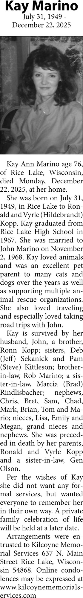 Dec 31, 2025. Obituaries Obituaries Ads from Rice Lake Chronotype