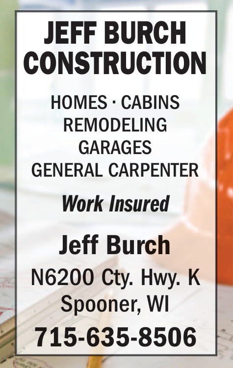 Jan 01, 2026. Jeff Burch Construction Construction Ads from Spooner Advocate