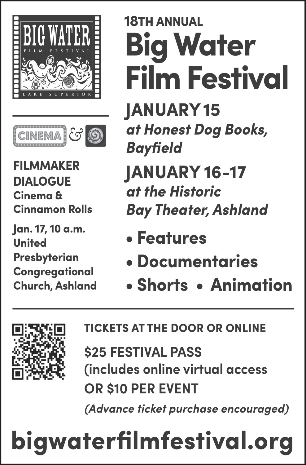 Ads for 18th Annual Big Water Film Festival in NORTHWESTERN WISCONSIN
