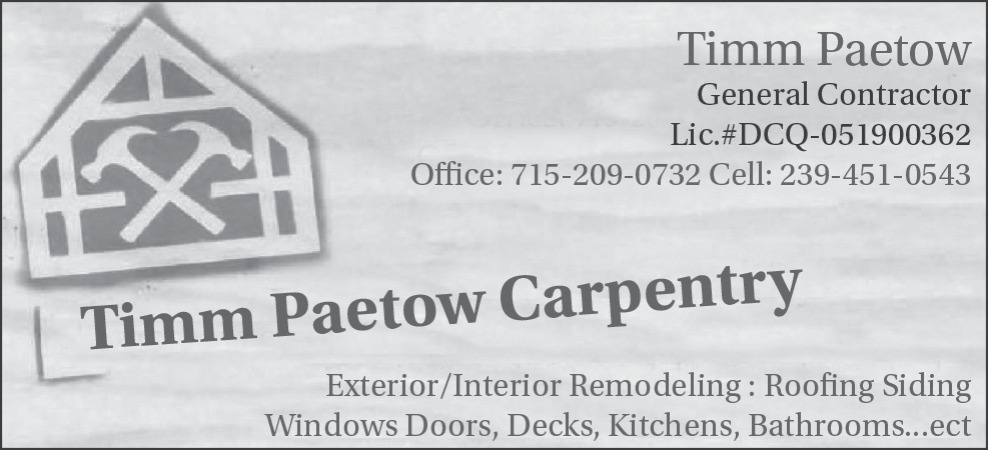 Ads for Timm Paetow Carpentry in NORTHWESTERN WISCONSIN