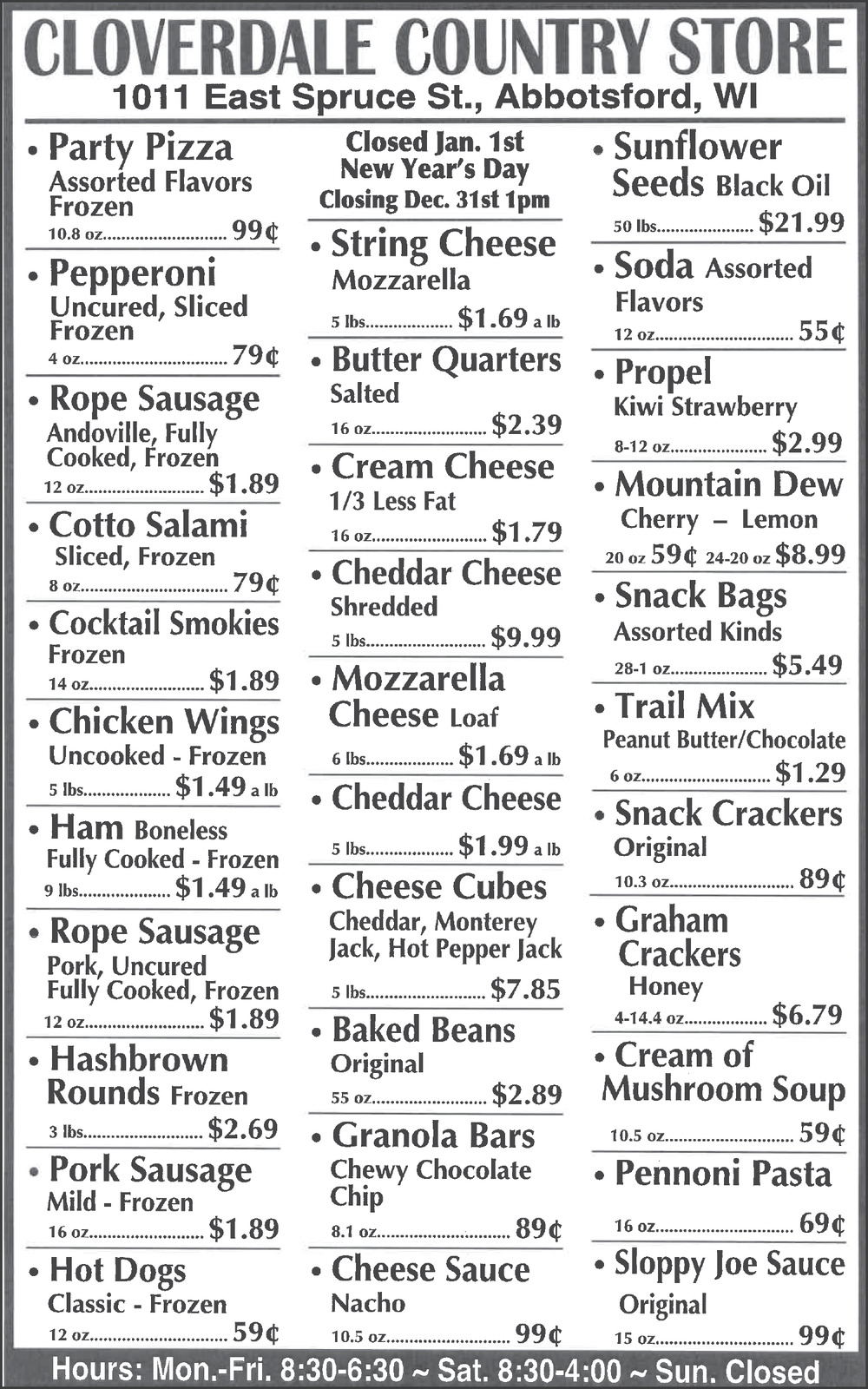 Jan 03, 2026. Cloverdale Country Store Grocery Stores & Markets Ads from Ashland Daily Press