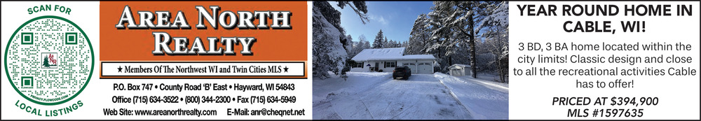 Jan 07, 2026. Area North Realty Real Estate Ads from Sawyer County Record