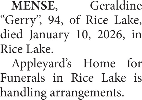 Obituary in NORTHWESTERN WISCONSIN