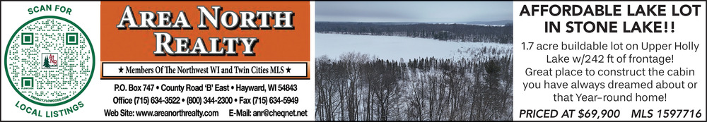 Jan 14, 2026. Area North Realty Real Estate Ads from Sawyer County Record