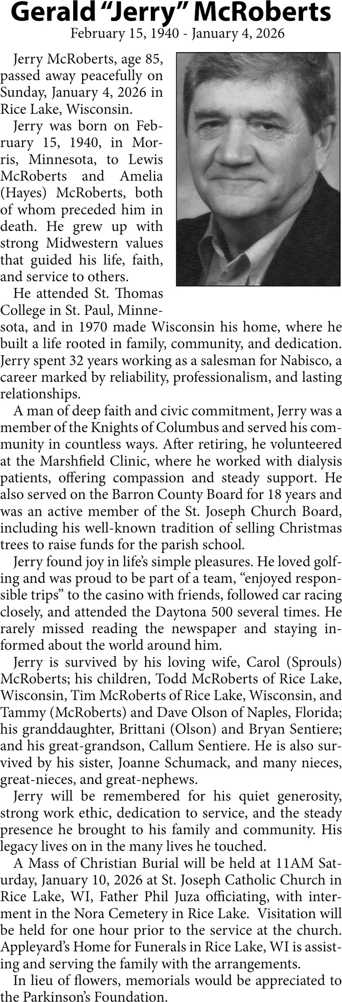 Jan 14, 2026. Obituaries Obituaries Ads from Rice Lake Chronotype