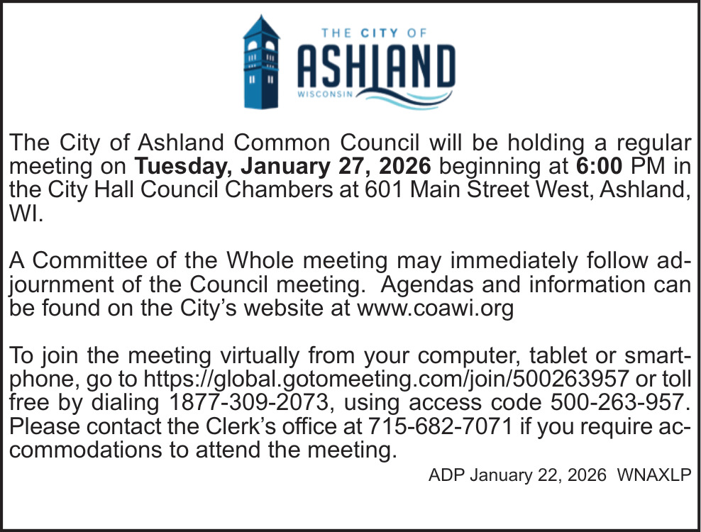 Jan 22, 2026. City Of Ashland Public Notice Ads from Ashland Daily Press