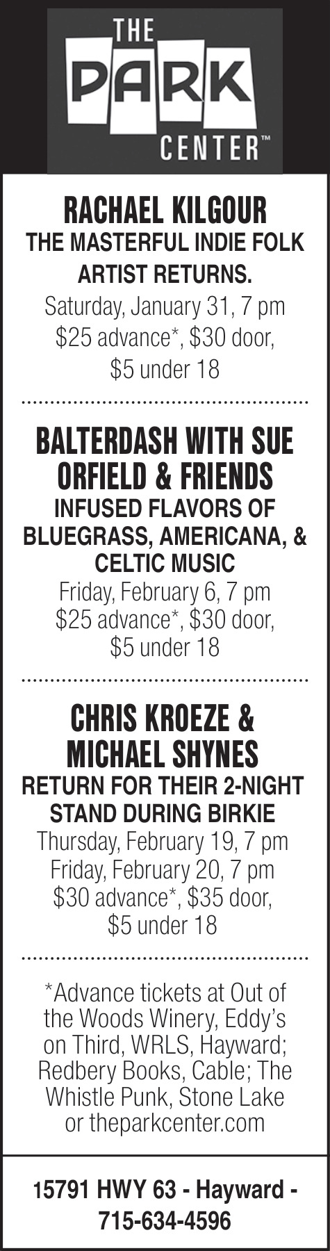 Jan 28, 2026. The Park Center Shows & Theater Ads from Sawyer County Record