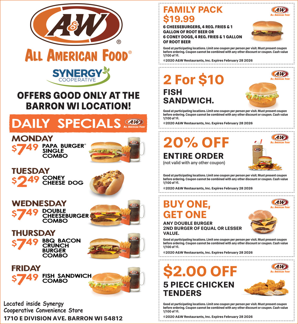 Jan 28, 2026. A&W - Phillips Restaurants Ads from Rice Lake Chronotype