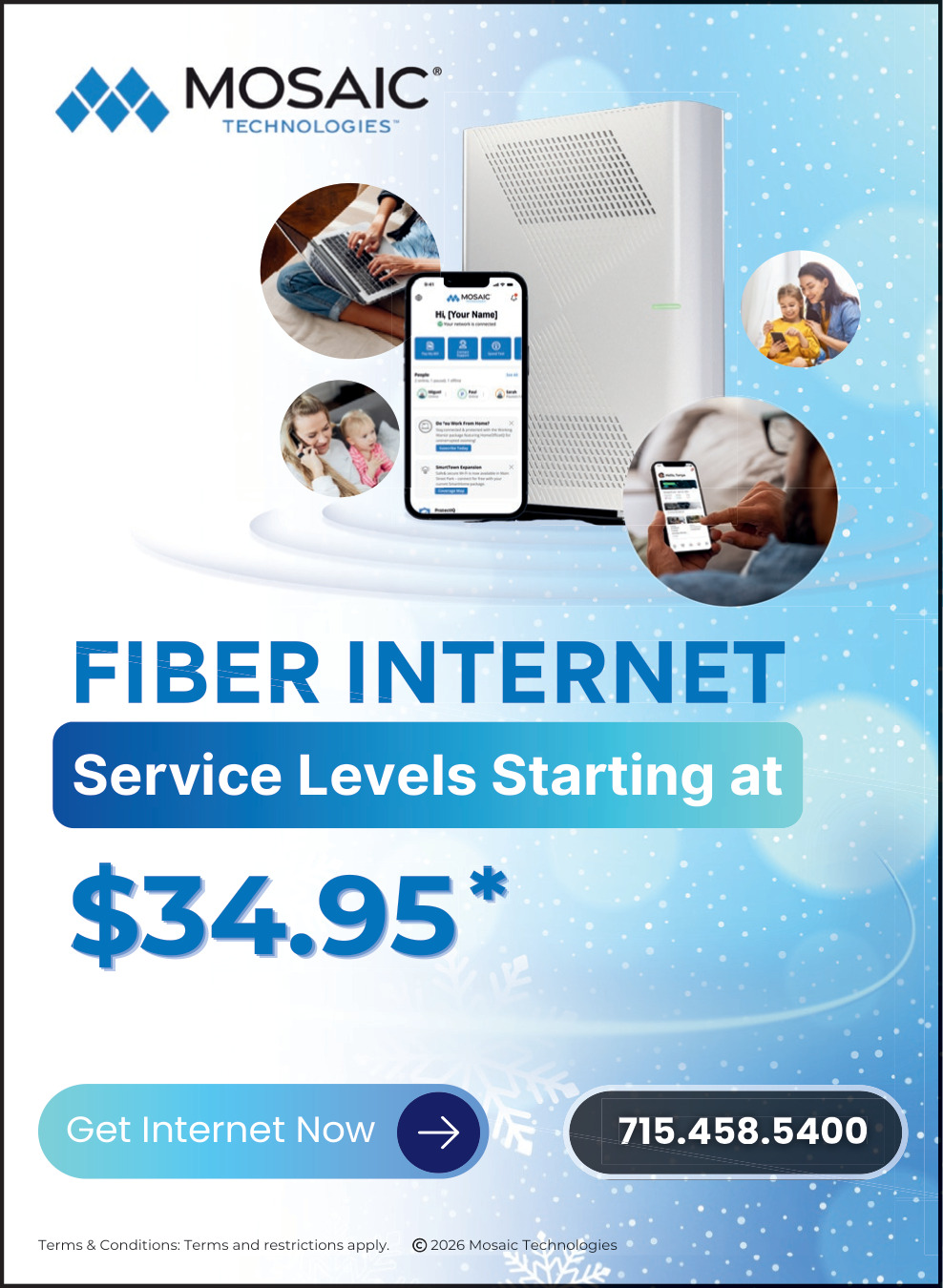 Feb 04, 2026. Mosaic Technologies Telecom Ads from Rice Lake Chronotype