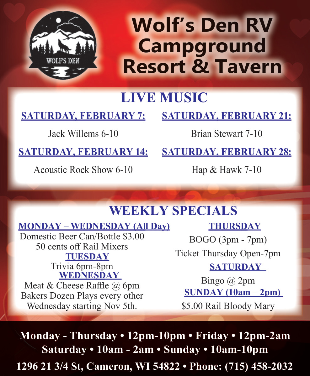 Mar 11, 2026. Wolf's Den RV Campground Campground Ads from Rice Lake Chronotype