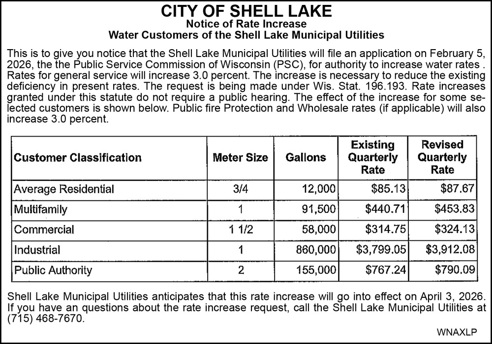 Mar 05, 2026. City of Shell Lake Public Notice Ads from Spooner Advocate