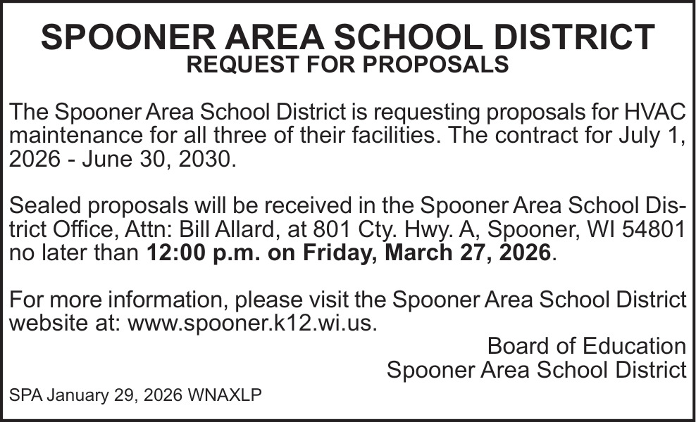 Feb 05, 2026. Spooner Area School District Public Notice Ads from Spooner Advocate