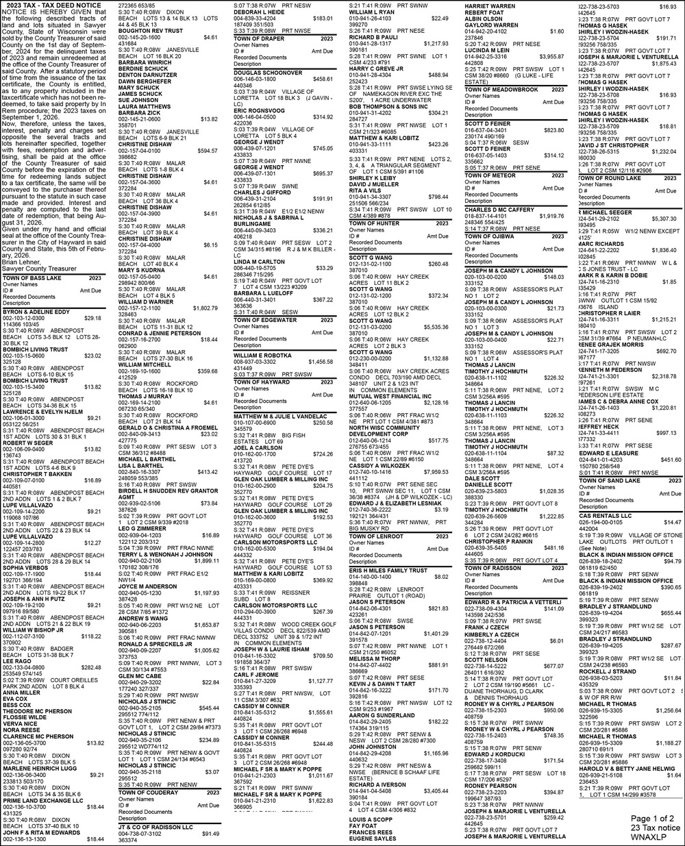 Feb 11, 2026. Sawyer County Public Notice Ads from Sawyer County Record