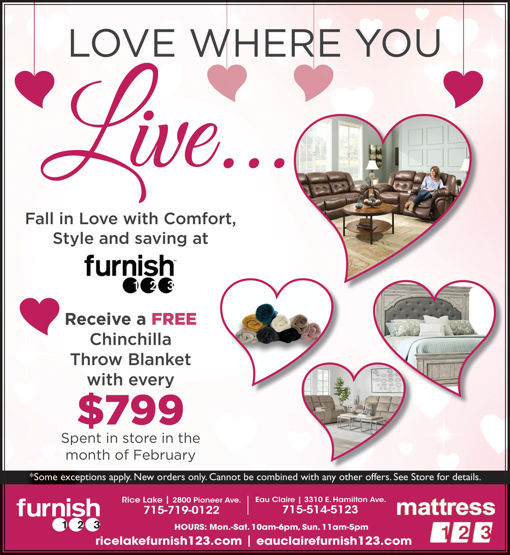 Feb 13, 2026. Furnish 123 Home Furnishing Ads from Rice Lake Chronotype