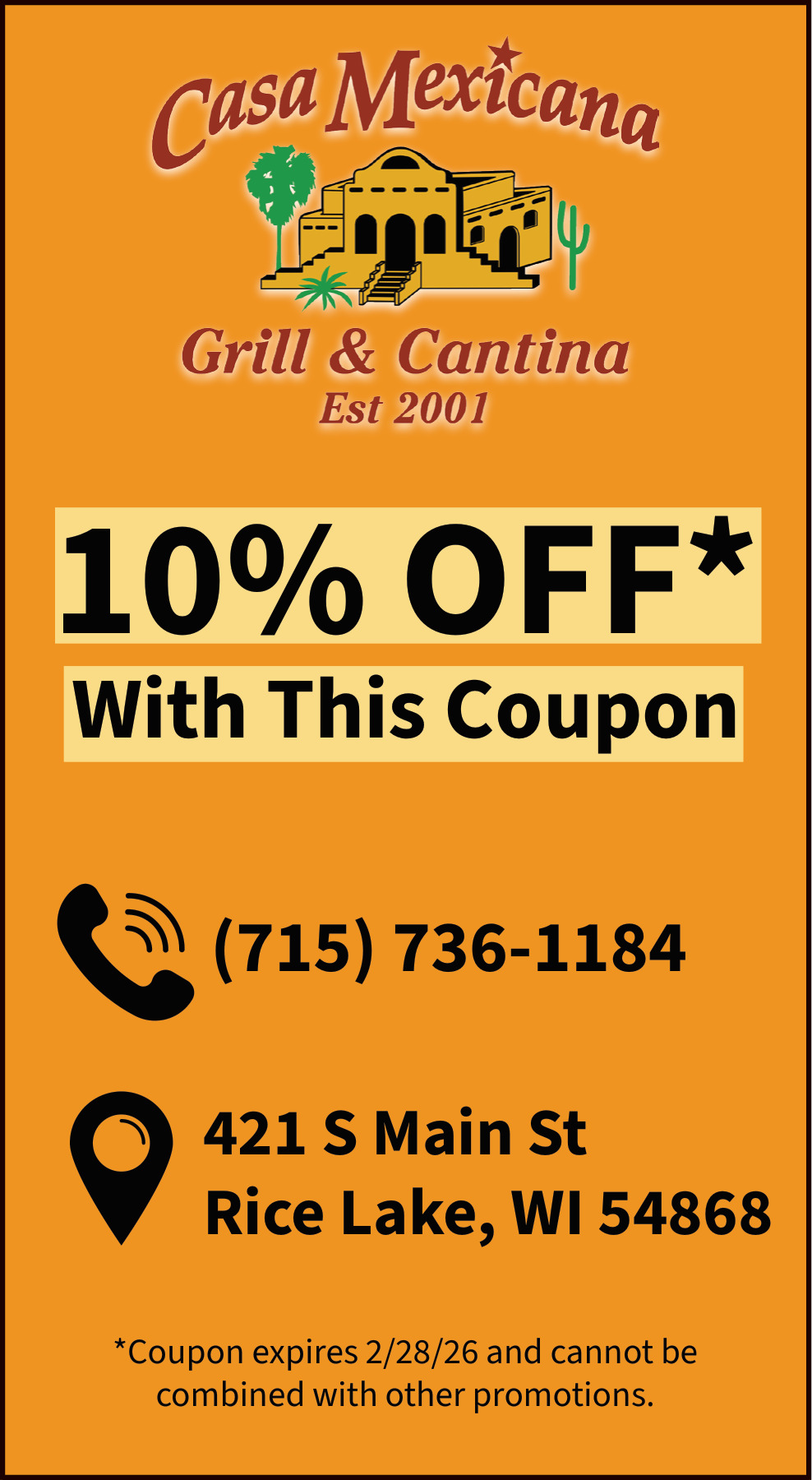 Feb 18, 2026. Casa Mexicana Ads from Rice Lake Chronotype