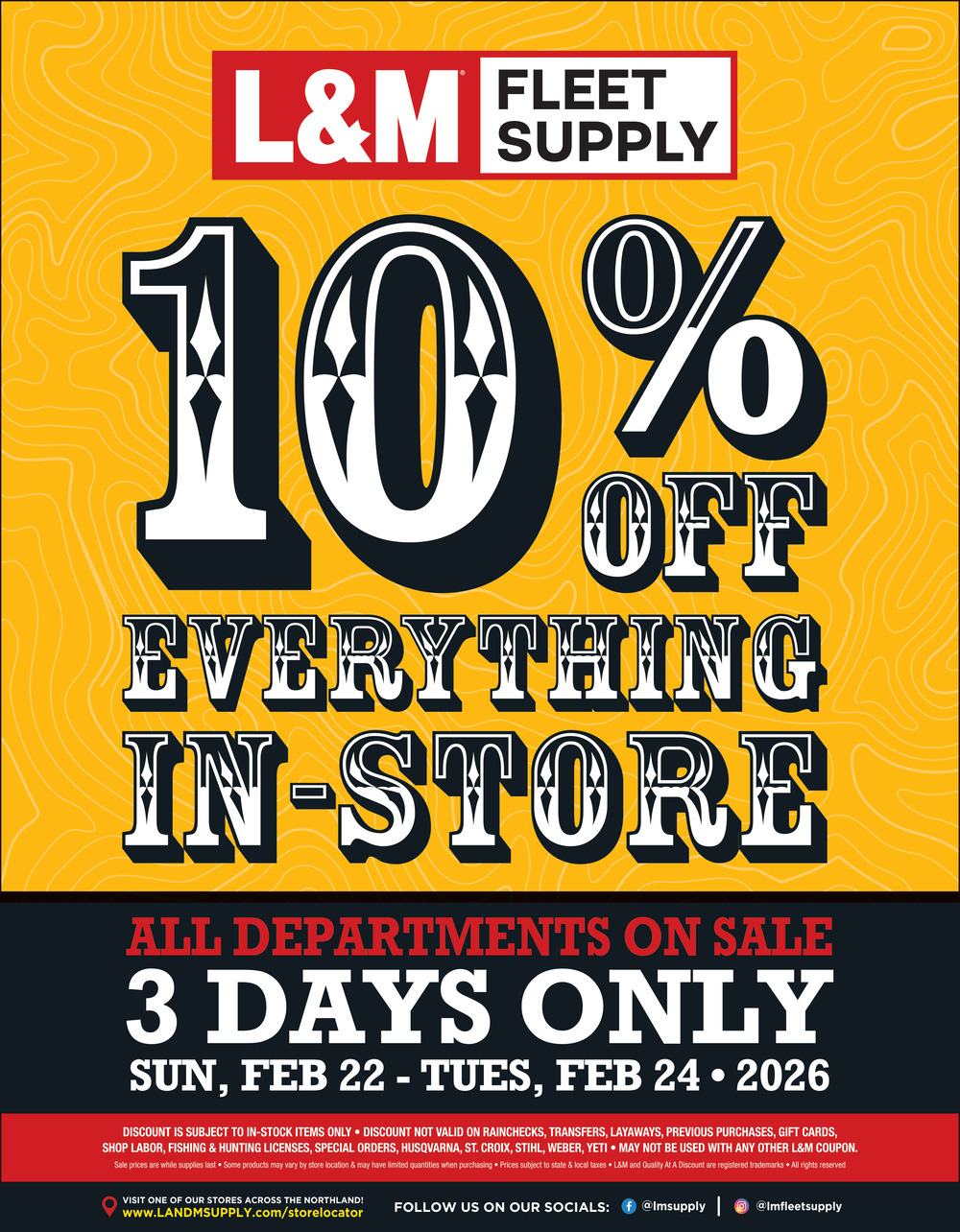 Feb 19, 2026. L&M Fleet Supply Sporting Goods Ads from Ashland Daily Press