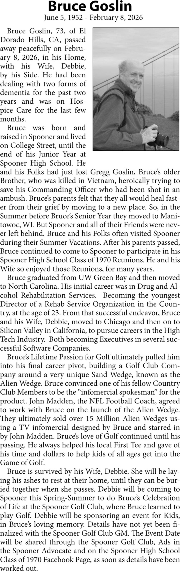 Feb 26, 2026. Obituaries Obituaries Ads from Spooner Advocate