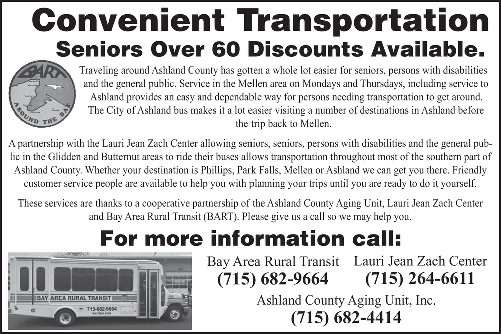 Ads for Bay Area Rural Transit in Ashland, WI