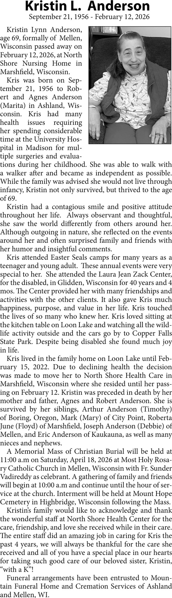 Obituary in NORTHWESTERN WISCONSIN