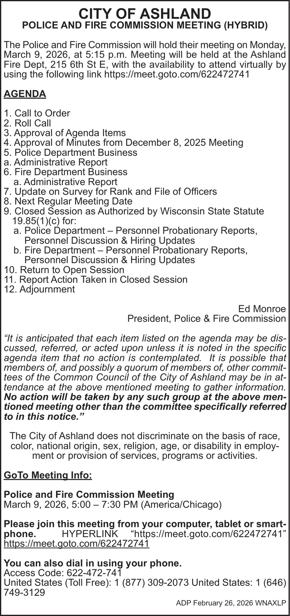 Feb 26, 2026. City Of Ashland Public Notice Ads from Ashland Daily Press