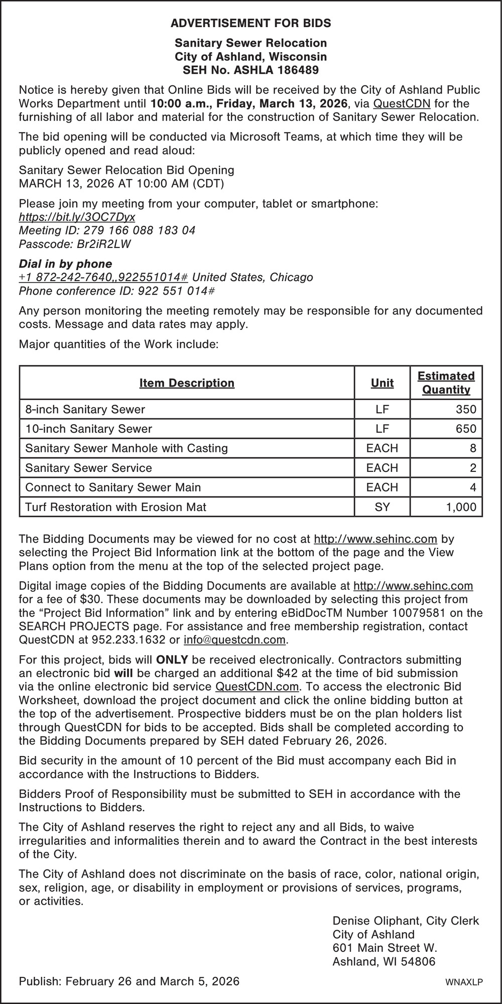 Feb 26, 2026. City Of Ashland Public Notice Ads from Ashland Daily Press