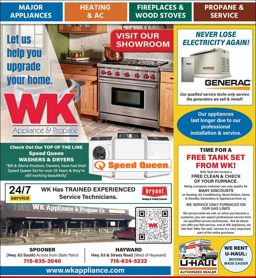 Ads for WK Appliance and Propane in Hayward, WI