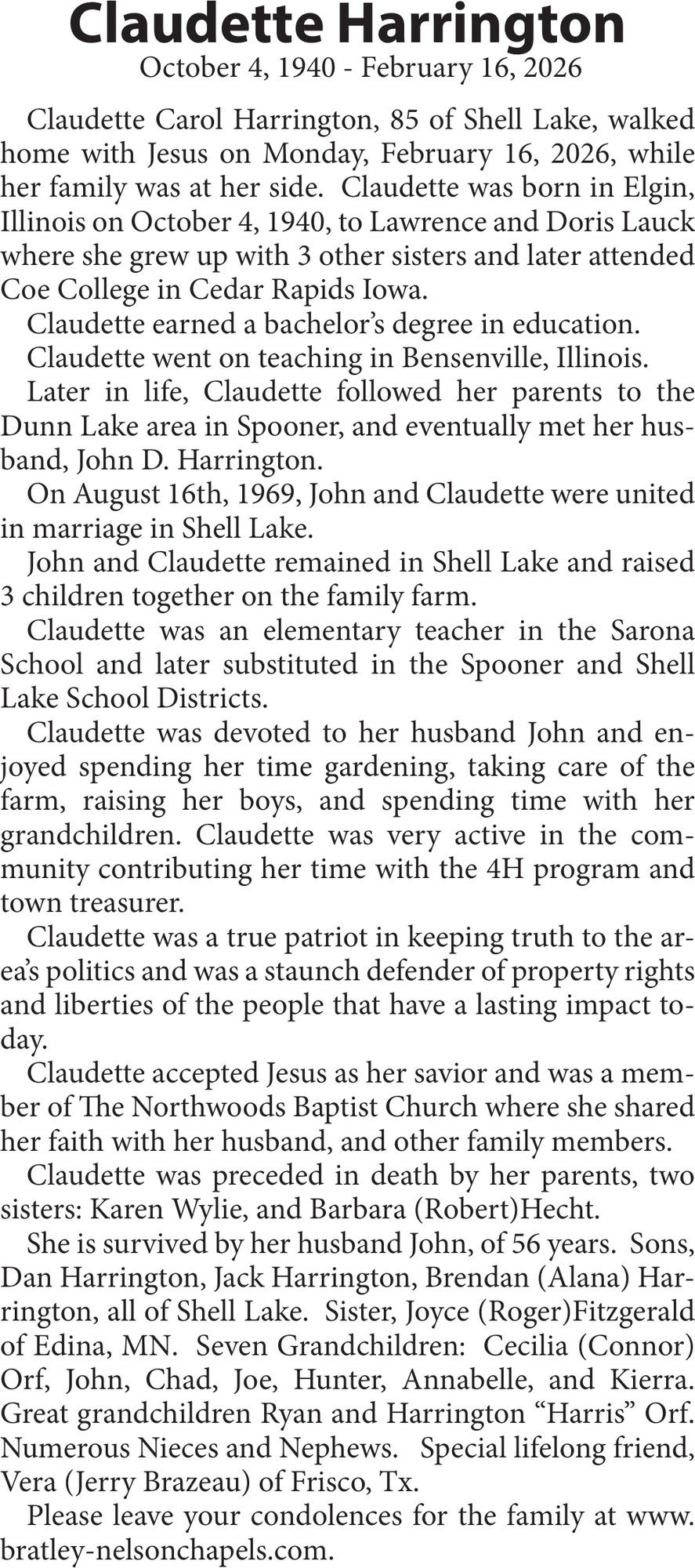 Obituary in Spooner, WI