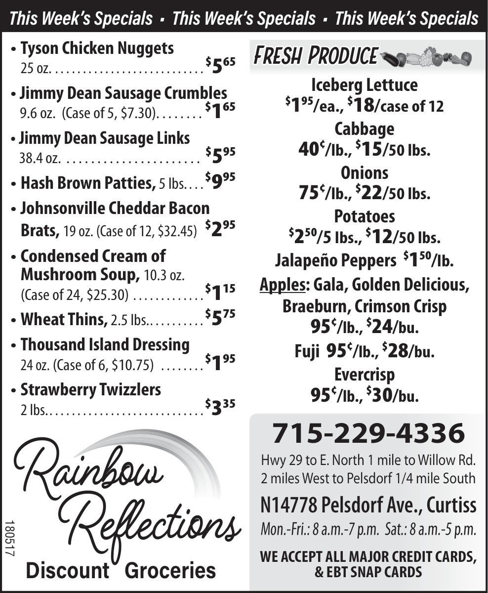 Mar 05, 2026. Rainbow Reflections - Curtiss Grocery Stores & Markets Ads from Price County Review